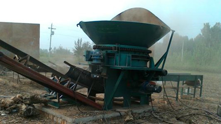 其主要是靠沖擊能來(lái)完成破碎生物作業(yè)的。錘式樹(shù)墩破碎機(jī)工作時(shí),電機(jī)帶動(dòng)轉(zhuǎn)子作高速旋轉(zhuǎn),生物均勻的進(jìn)入樹(shù)墩破碎機(jī)腔中,高速回轉(zhuǎn)的錘頭沖擊、剪切撕裂生物致生物被破碎,同時(shí)生物自身的重力作用使生物從高速旋轉(zhuǎn)的錘頭沖向架體內(nèi)擋板、篩條,在轉(zhuǎn)子下部,設(shè)有篩板、粉碎生物中小于篩孔尺寸的粒級(jí) 通過(guò)篩板排出,大于篩孔尺寸的生物阻留在篩板上繼續(xù)受到錘子的打擊和研磨。