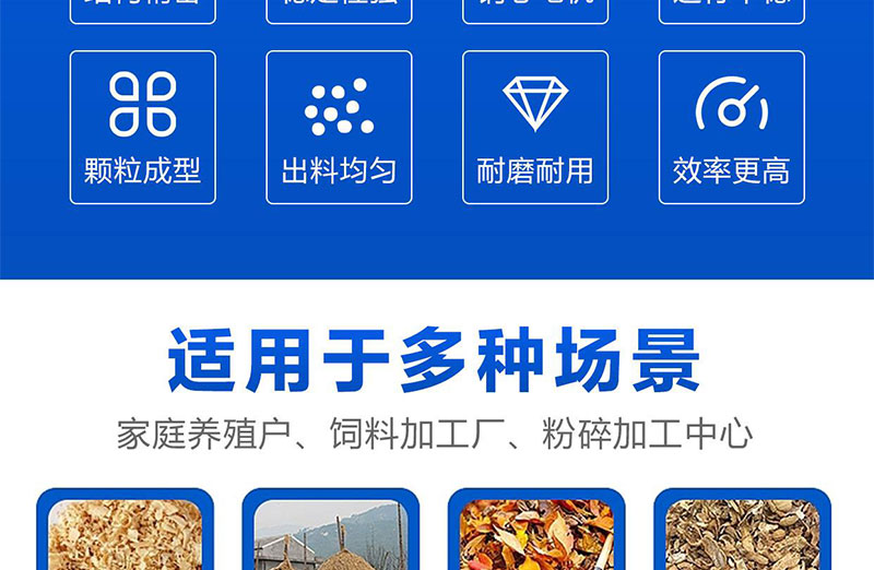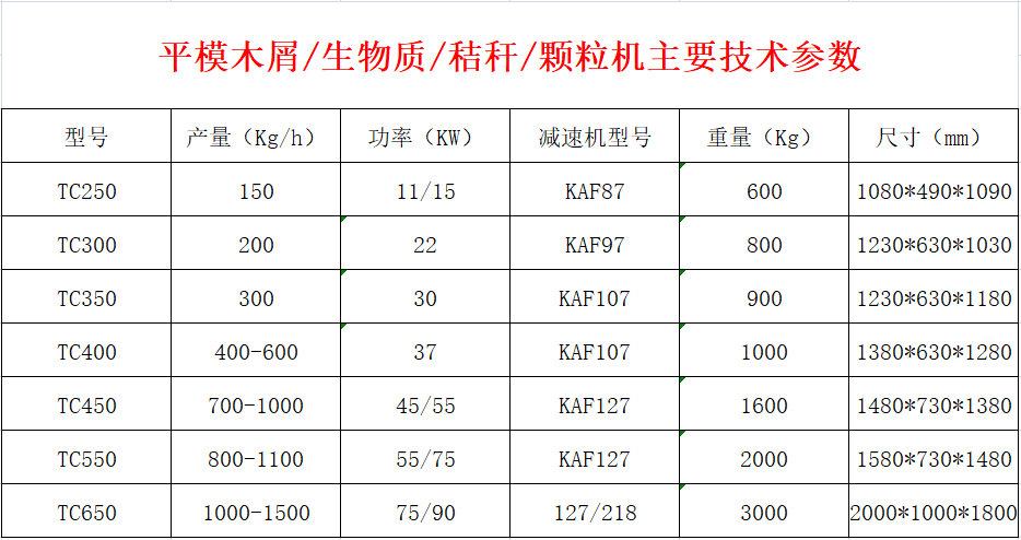 我廠的平模木屑顆粒機加工出的顆粒在6-10mm。成型后的顆粒特點:比重大,體積小,耐燃燒,便于儲存和運輸。成型后的體積是原料體積的1/30~40,比重是原料的10~15倍(密度為:0.8-1.4)熱值可達3400~6000大卡,是高揮發(fā)酚的固體燃料。